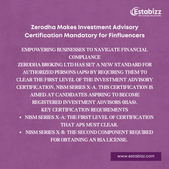 Zerodha Broking Ltd has set a new standard for Authorized Persons (APs) by requiring them to clear the first level of the investment advisory certification, NISM Series X-A. This certification is aimed at candidates aspiring to become Registered Investment Advisors (RIAs).