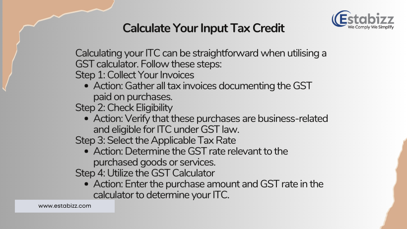 Calculating your ITC can be straightforward when utilising a GST calculator. Follow these steps: